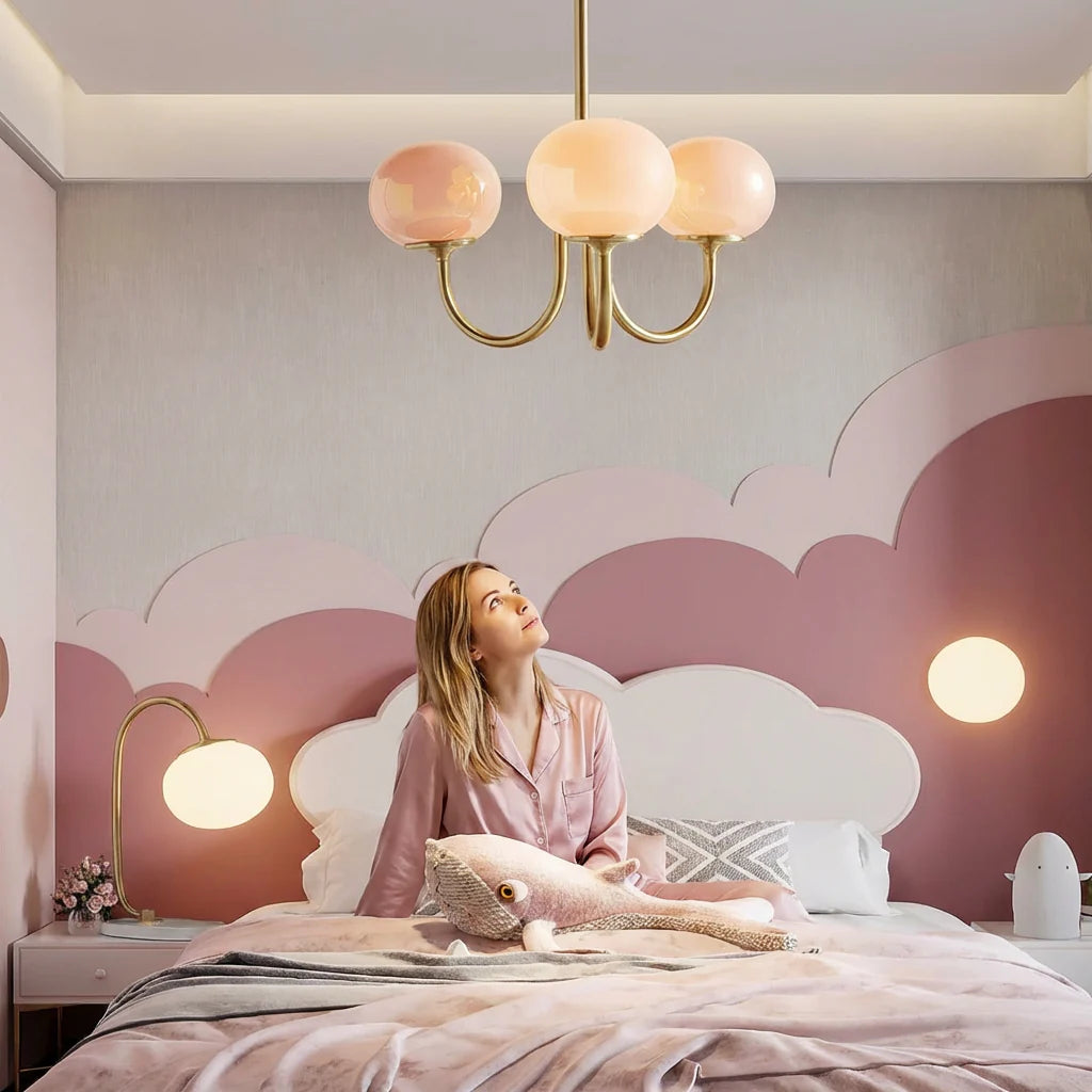 Moderne lyserød og guld lysekrone loftslampe